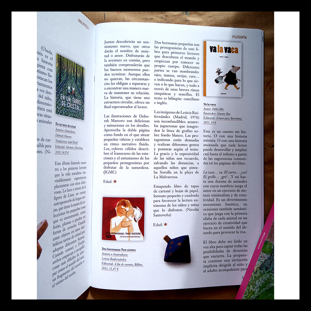 Es una maravilla que la revista Peonza, tan cuidada y fabulosa, haya realizado esta reseña de Dos hermanas. Y con un guiño a las pinturas de Sorolla, ¡qué maravilla!