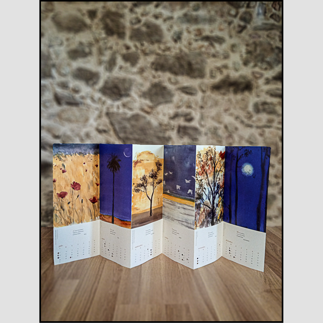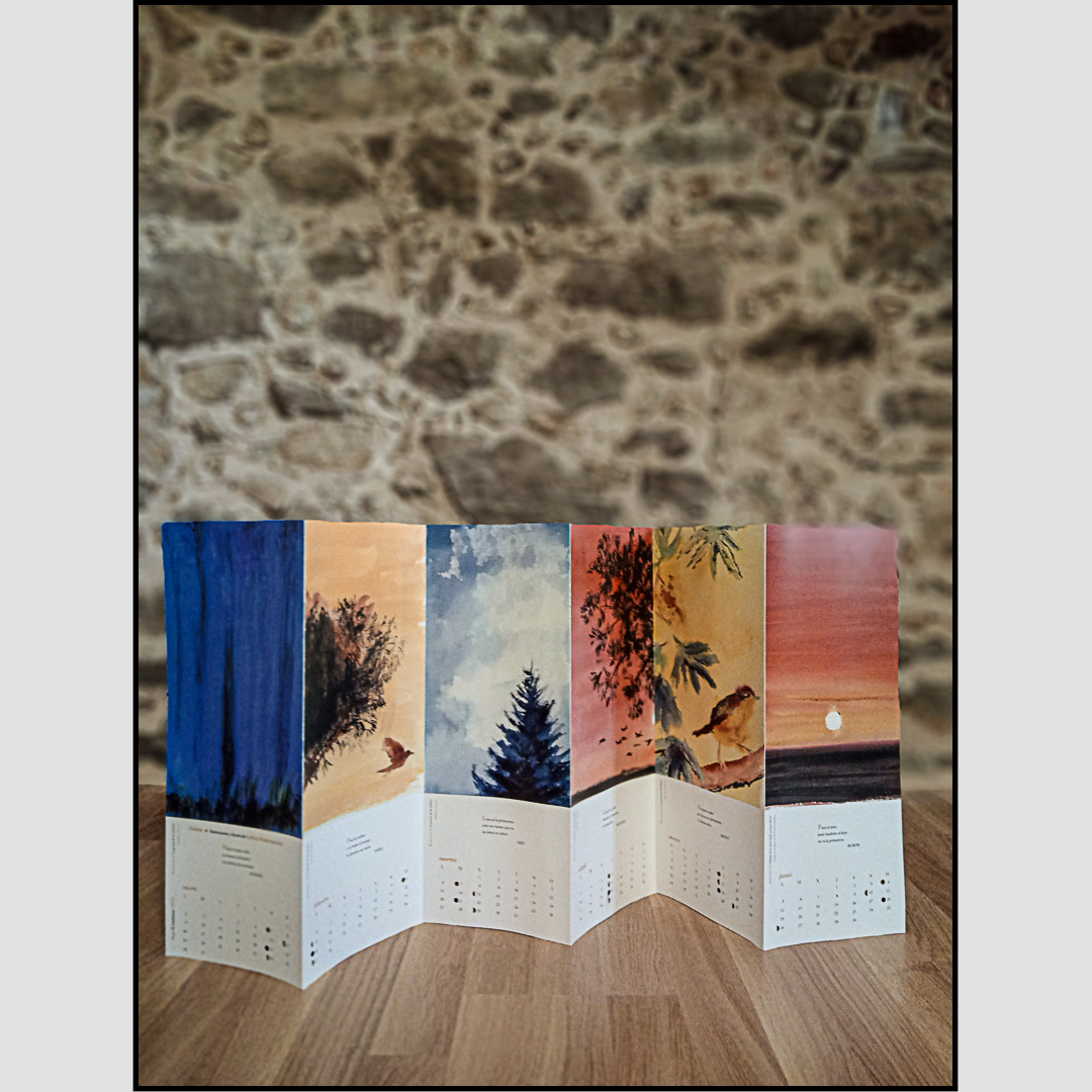 Calendario pictórico y poético, con una selección de haikus clásicos japoneses, acompañado por las acuarelas de Leticia Ruifernández.